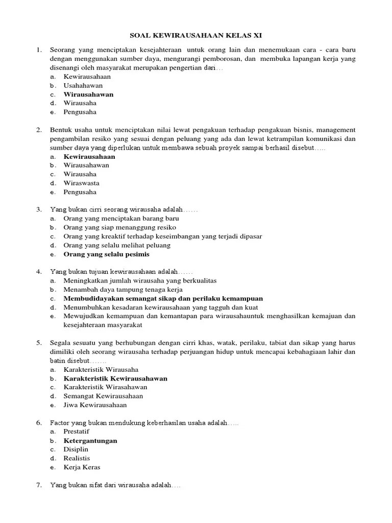 Soal kewirausahaan kelas 11 semester 1 dan semester 2 beserta kunci jawaban nya terlengkap dan terbaru, soal pilihan ganda, esay dan soal diskusi.