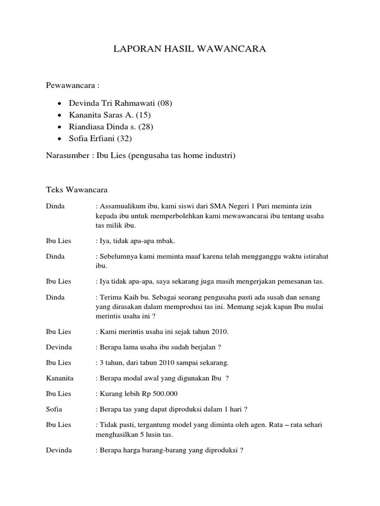 Ekonomi (kue pabrik sherly) wawancara contoh laporan pengusaha.